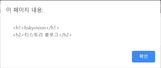 위 코드를 실행하면 아이디가 title인 요소 안의 html 코드를 경고창에 띄워줍니다.