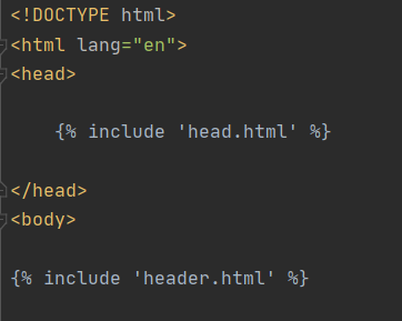 사용법은 다음과 같습니다. 중복되는 부분들을 또 다른 html 문서로 각각 작성한 후, 중복되는 부분에는 다음과 같이 한줄의 코드로 대체해주는 것입니다.