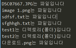위 코드를 실행하면, 각 아이템이 파일인지 디렉토리인지 판별해줍니다.