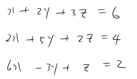 미지수가 3개, 방정식이 3개인 선형 시스템을 생각해볼까요?