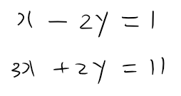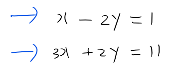 이제 선형 방정식이 무엇인지 어느 정도 감을 잡으셨죠? 그럼 이제 다음과 같은 두 개의 선형 방정식(linear equation)이 있다고 가정하겠습니다.