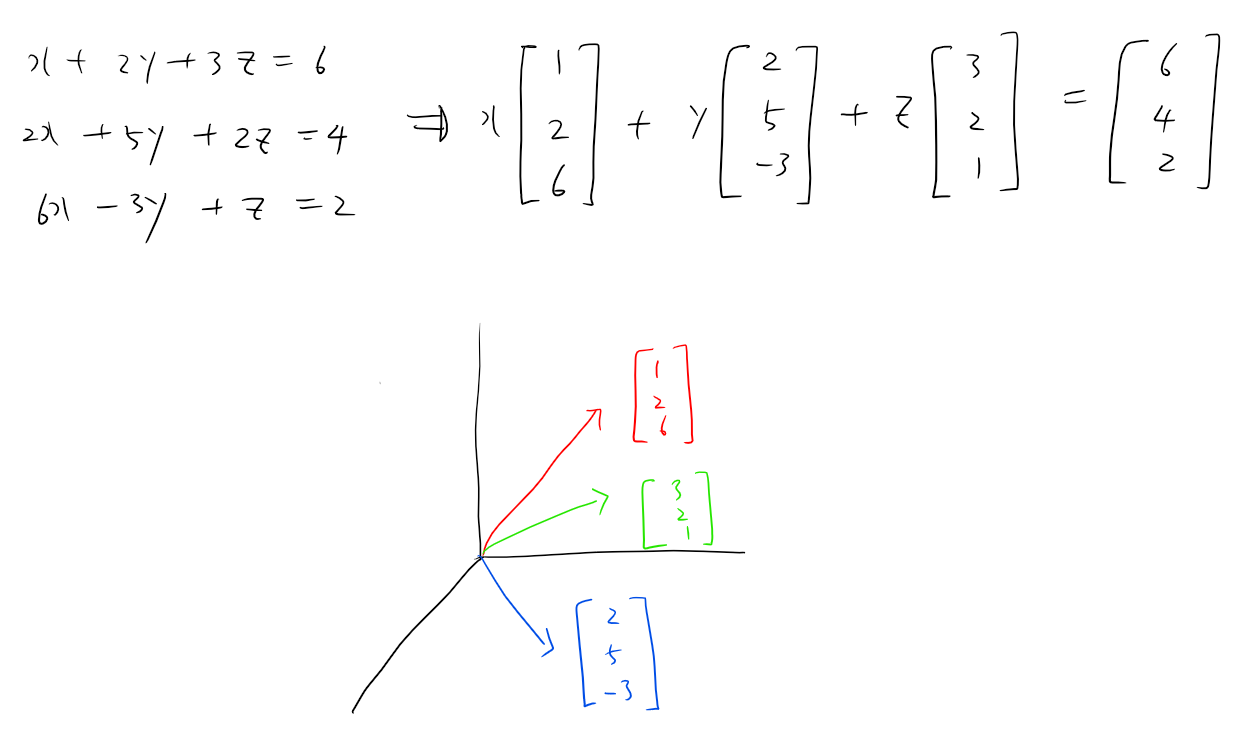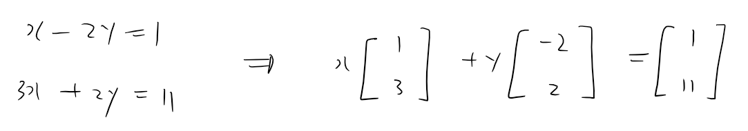 그렇다면, column picture로 푼다는 것은 어떤 의미일까요? 문자 그대로 이야기하자면, 열의 관점에서 선형 시스템을 보는 것입니다.