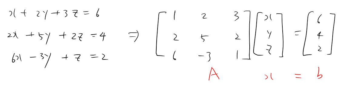 이제 선형 방정식들이 주어지면 행렬과 벡터를 이용해서 Ax = b로 나타낼 것입니다.