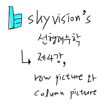오늘은 기존에 우리가 선형 방정식을 해석할 때 사용했던 관점을 바꾸는 작업을 했습니다. 그 전에는 행으로 선형 시스템을 분석했다면, 이제는 열로 선형 시스템을 분석하도록 노력해야 합니다. 사실 한 번 고착화된 습관을 바꾸는 것이 쉽진 않은 일이지만, 그래도 바꿔야합니다. 선형대수학의 더 깊은 세계로 들어가려면 그리해야 합니다.