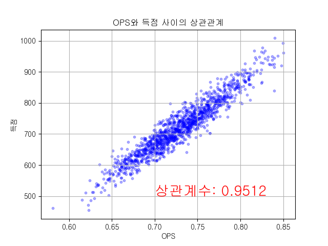 OPS와 득점 사이의 상관관계