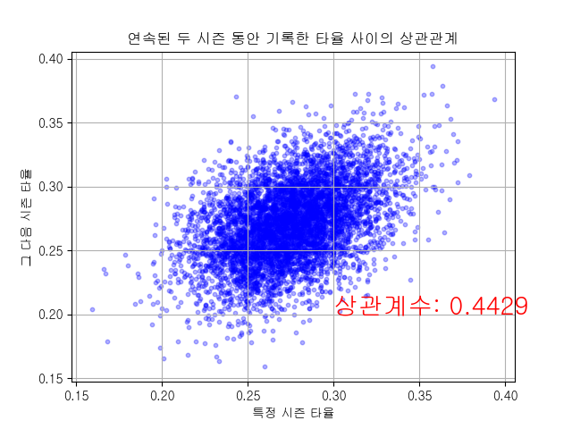 연속된 두 시즌의 타율 사이의 상관관계