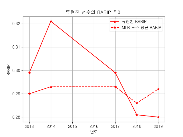 류현진 선수의 BABIP
