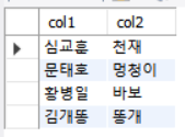 또한 다음과 같은 테이블(test1)이 있습니다. col1 컬럼과 col2 컬럼으로 구성되어 있는데 현재 비어있습니다.