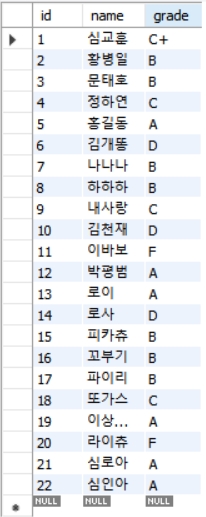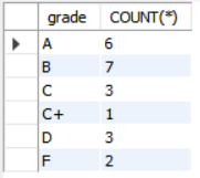위와 같은 쿼리를 주면 A학점이 6명, B학점이 7명, ..., F학점 2명임을 한눈에 알 수 있습니다.