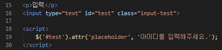 id가 test인 input 요소에 placeholder를 추가해봤습니다.