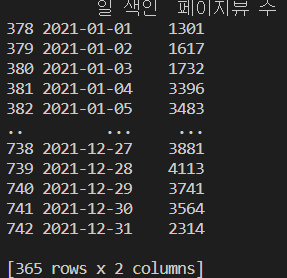 df_2021 = df_page_views[df_page_views['일 색인'].between('2021-01-01', '2021-12-31')]