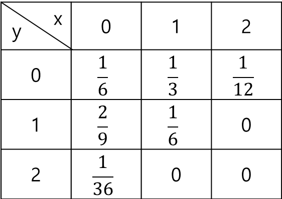 이 확률들을 아래와 같이 결합확률분포표에 담으면 좀 더 보기 좋다.