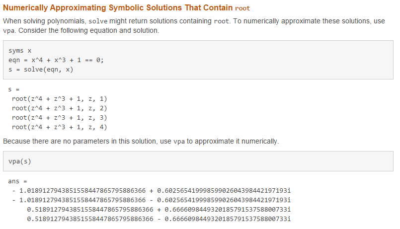 그리고 간혹 방정식의 해를 위와 같은 방식으로 구했는데 root라는 것이 포함된 어떠한 식으로 표현될 때가 있습니다.