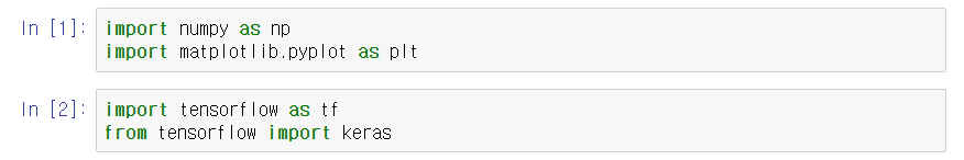 그럼 한줄 한줄 진행하면서 설명을 덧붙이겠습니다. 그전에 matplotlib와 tensorflow는 아나콘다에 설치되어 있지 않기 때문에 conda install matplotlib tensorflow를 Anaconda prompt에 입력해서 설치해주시기 바랍니다. 설치가 완료되었다면, 이제 다음과 같이 패키지들을 import 해주겠습니다.