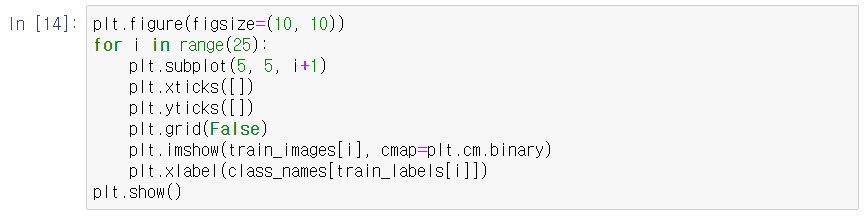 훈련 데이터셋을 좀 더 들여다볼까요? 25개의 훈련셋 이미지를 살펴보겠습니다.