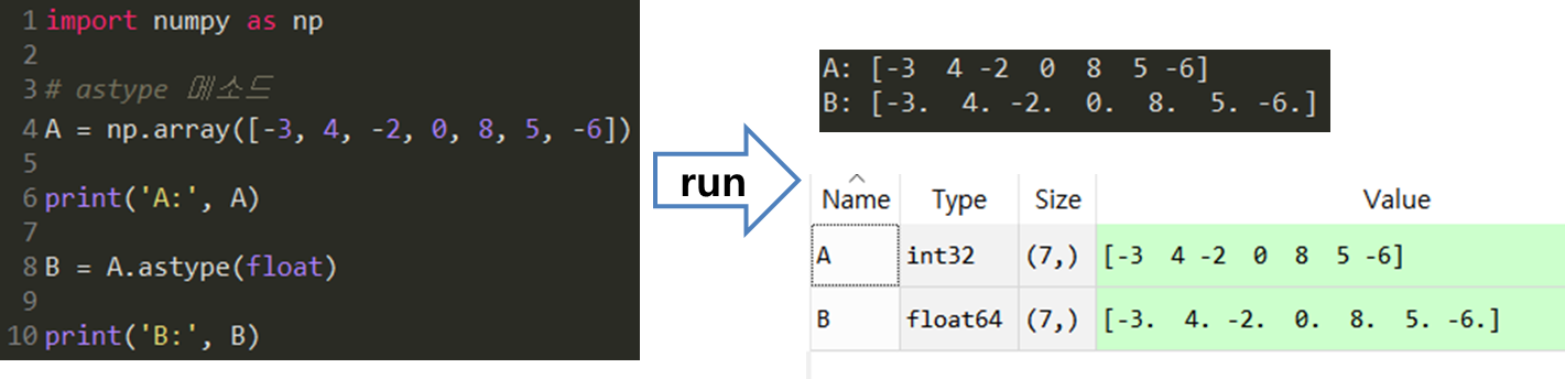 배열 원소의 자료형이 int32에서 float64로 바뀐 것을 확인하실 수 있습니다.