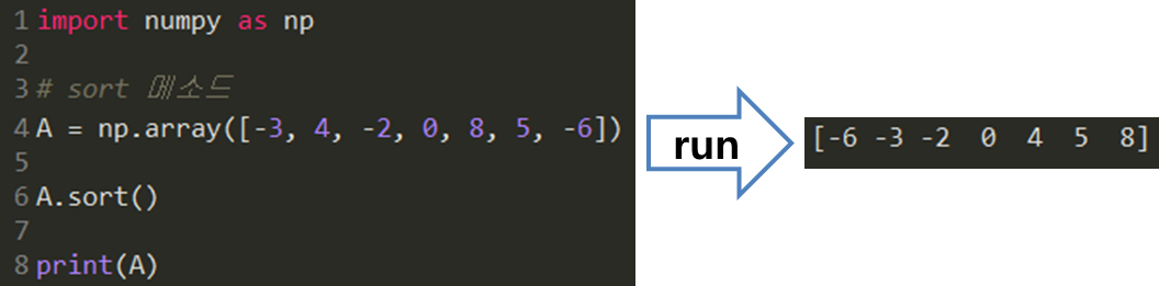 8. argsort 메소드: 정렬된 배열 원소들의 인덱스를 반환