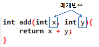 매개변수=인자=parameter : 함수에서 전달된 값을 받는 변수