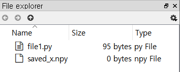 saved_x.npy라는 이름의 파일이 해당 디렉토리에 생성되었습니다. .npy라는 확장자가 낯설게 여겨지실 수 있지만, numpy 배열을 저장하고 있는 파일이구나 정도로만 생각하시고 넘어가시면 됩니다.