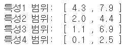 print("특성4 범위: ", "[", min(X_train[:, 3]), ",", max(X_train[:, 3]), "]")