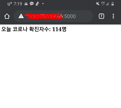 서버가 잘 작동해서 오늘 코로나 확진자수에 대한 내용을 잘 제공하고 있는 것을 확인할 수 있습니다.