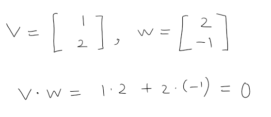 만약 점곱의 결과가 0이 된다면, 이때는 상당히 중요한 기하하적(geometrical) 의미를 갖습니다.