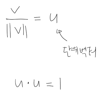 그러면 길이가 1이 되어 버립니다. 길이가 1인 벡터를 단위 벡터(unit vector)라고 부릅니다.