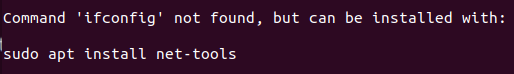 윈도우 컴퓨터에서 ipconfig와 동등한 우분투 명령어는 ifconfig입니다. 한 글자만 다릅니다. 우분투 터미널에서 ifconfig를 명령해줬는데 만약 다음과 같은 애러가 뜨면, 알려준 것처럼 net-tools를 설치해줘야 합니다.