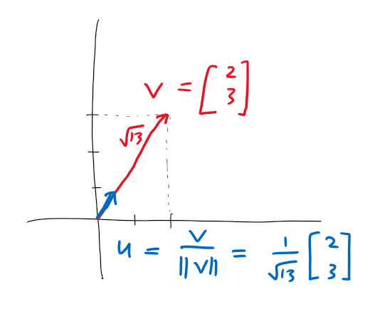 그러면 길이가 1이 되어 버립니다. 길이가 1인 벡터를 단위 벡터(unit vector)라고 부릅니다.