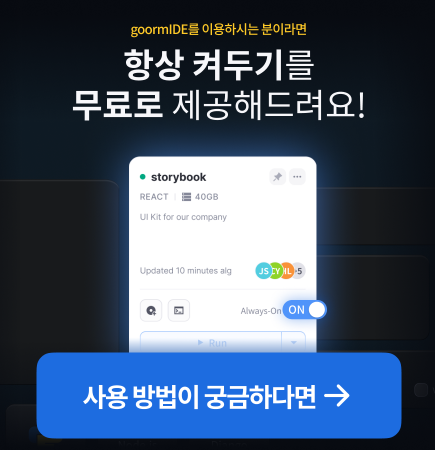 항상 켜두기 기능이 왜 중요하냐면, 서버 컴퓨터는 클라이언트와 데이터를 주고 받기 위해서 기본적으로 항상 켜져있어야 합니다. 그렇지 않으면 사용자가 원할 때 언제나 사이트에 접속하는 것이 불가능합니다. 구름 IDE의 항상 켜두기 기능에 대한 자세한 설명은 공식 문서를 확인하세요.