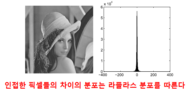 4) 고주파필터(highpass filter)에 의해 처리된 이미지의 이웃 픽셀값들의 차이도 라플라스 분포를 따른다.