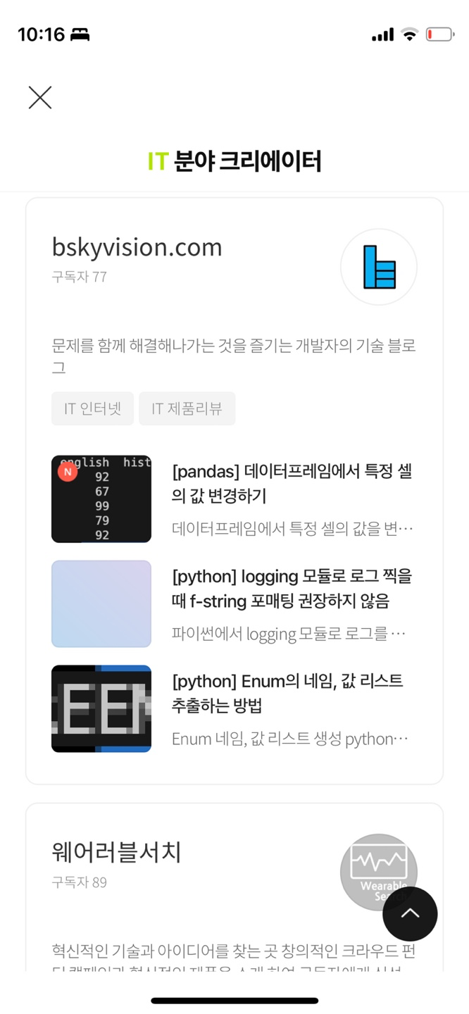 현재(2023-09-20) bskyvision이 티스토리 IT 분야 크리에이터 중에서 9번째로 소개되고 있습니다! (0) | 2023.09.20 |
