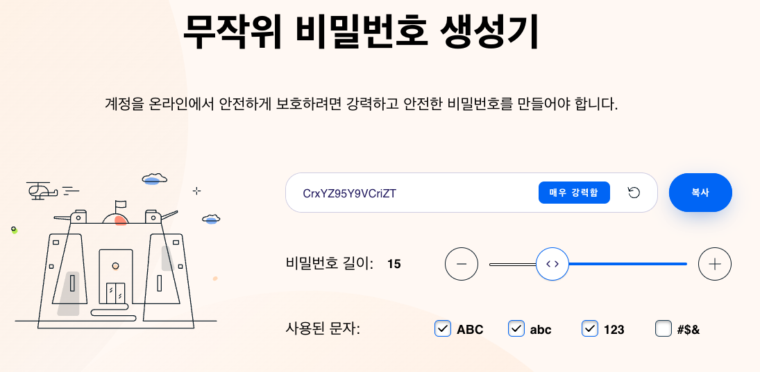 간단하게 사용할 수 있으니 무작위 비밀번호를 생성하기 귀찮을 때 이용해보시면 좋을 것 같습니다.