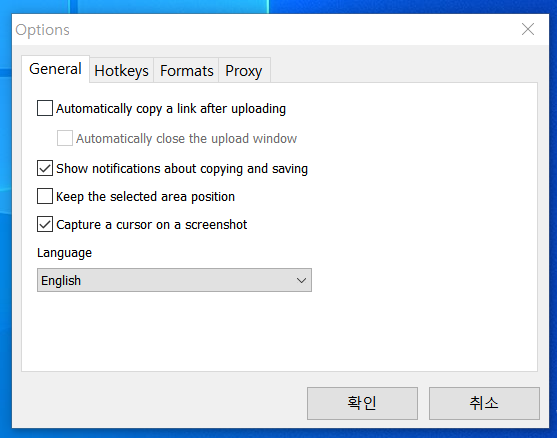 그 다음에 옵션(Options)을 클릭해서 들어가시면, Capture a cursor on a screenshot이란 체크박스가 있습니다. 이것을 체크해주세요.
