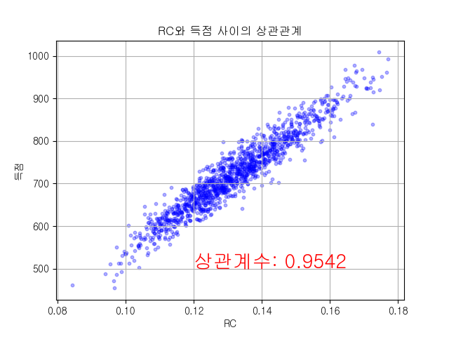 RC와 득점 사이의 상관관계