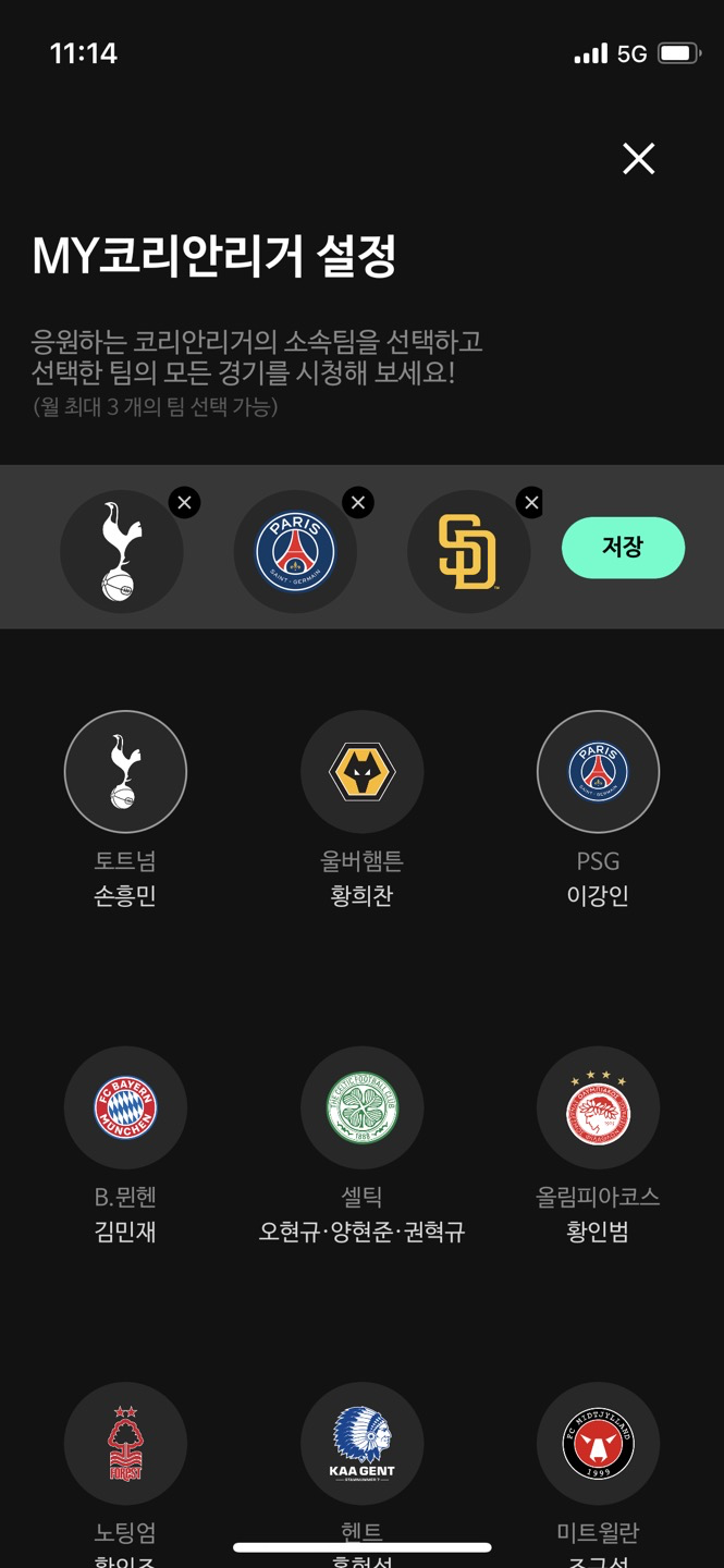 언제부터인지 모르겠는데, MY코리안리거 설정 기능이 생겼습니다(댓글로 알려주신 분 감사합니다). 코리안리거 3명을 선택하면 네이버플러스 멤버십만으로도 그 3명 선수의 경기에 한해서 라이브 경기를 시청할 수 있습니다. 이 정책 정말 칭찬합니다. 저는 손흥민, 이강인, 김하성 선수의 경기를 선택해두었습니다.