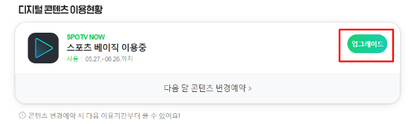 사용하고 있는 이용권이 보여질 것입니다. 저의 경우는 "스포츠 베이직 이용중"이란 문구가 떴습니다.