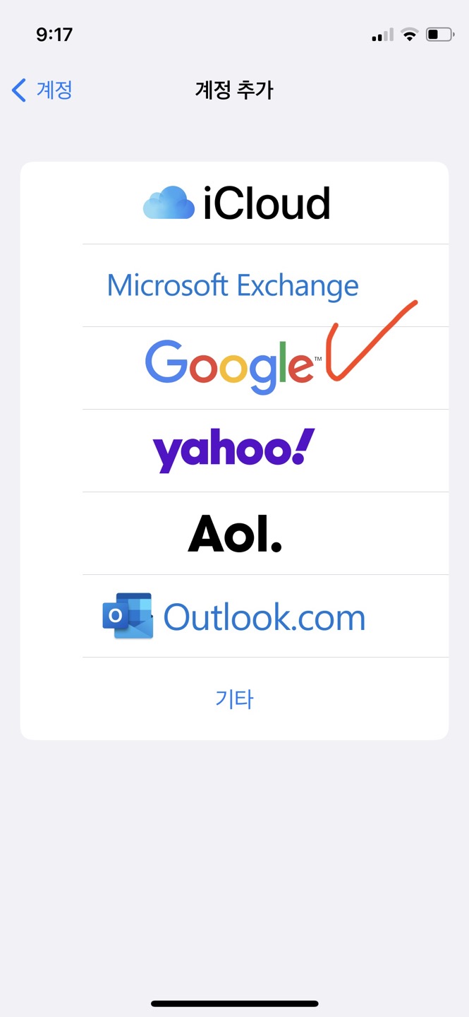 저는 이미 추가한 상황에서 화면을 캡쳐한 것이라 Gmail 계정이 추가되어 있습니다.