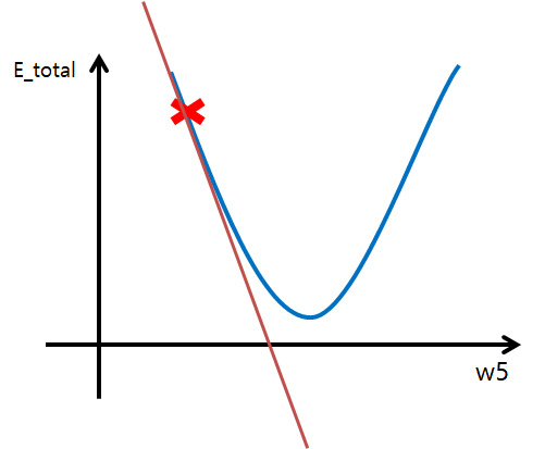$w5^+ = w5 - \alpha\frac{\partial E_{total}}{\partial w5}$