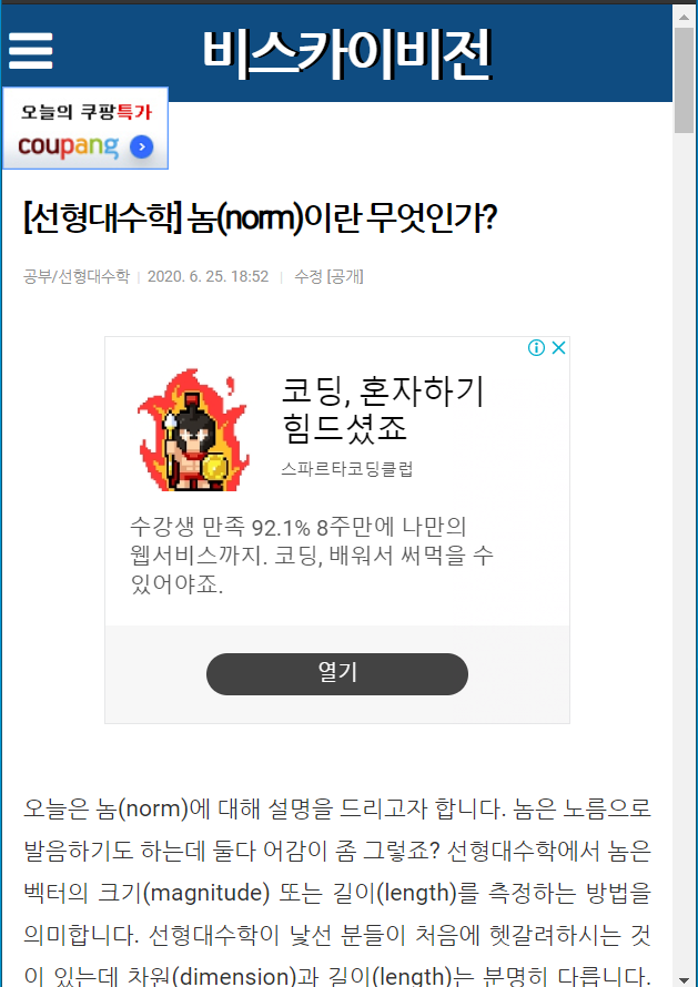 이번에 스킨을 꾸미면서, 모바일 화면에서는 아래에 사이드바가 거추장스럽게 많이 딸려 내려오지 않게 했습니다. 내용이 길지 않은 글들도 꽤 있는데, 본질보다 부가적인 것이 더 많이 보여지는 것이 좀 그렇더라고요. 좀 더 방문자분들이 글에 집중할 수 있도록 수정했습니다.