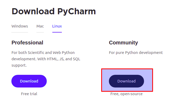 먼저 아래 사이트에서 리눅스 버전의 파이참을 다운로드 받습니다.