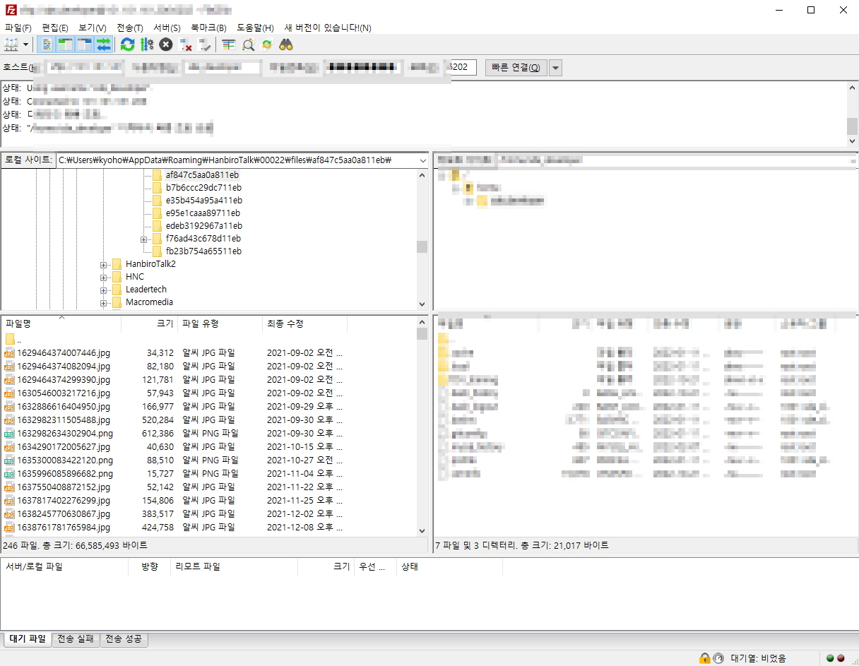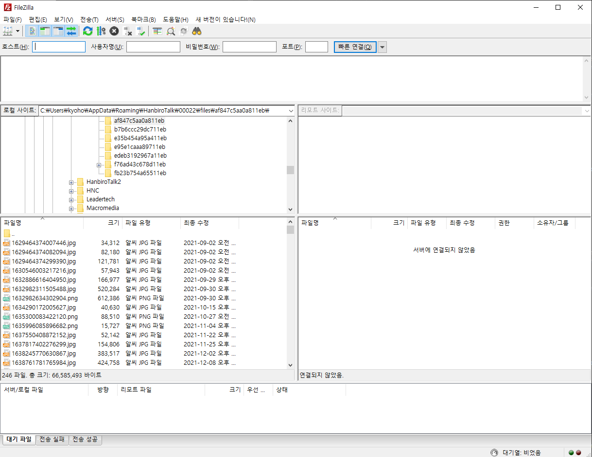 파일질라 프로그램을 다운로드/설치하신 후에 실행하시면, 다음과 같은 화면을 보실 수 있을 것입니다.