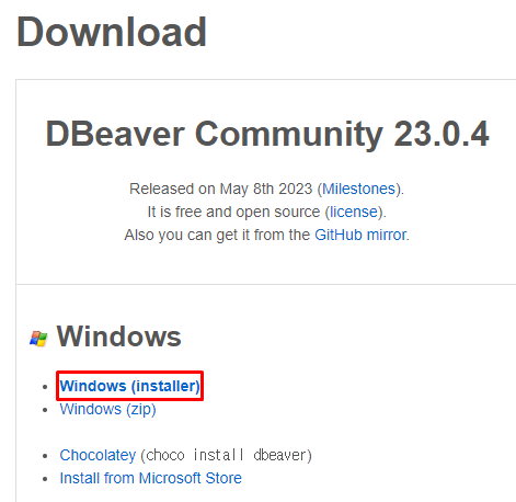 윈도우 PC에 DBeaver 설치하기