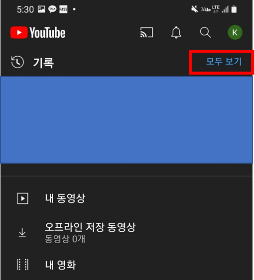 3. "기록" 우측에 있는 "모두 보기"를 클릭합니다.