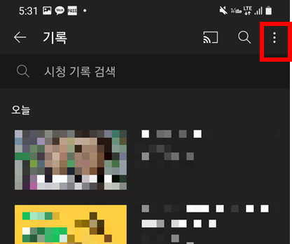 최근 시청한 영상 리스트가 쭉 나올 것입니다.
