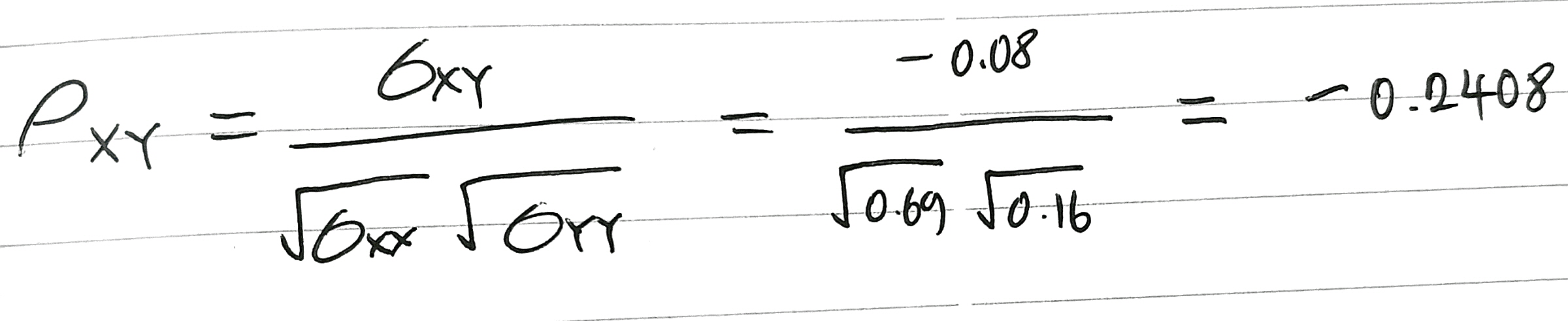 자 이제 다음과 같이 X와 Y의 상관계수를 구할 수 있다.