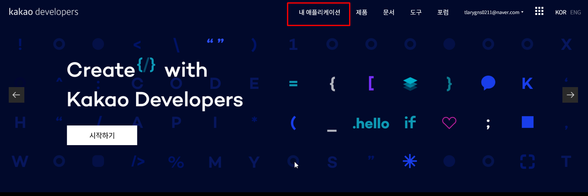 developers.kakao.com/에 들어가셔서 로그인하신 후에 [내 애플리케이션]을 클릭합니다.