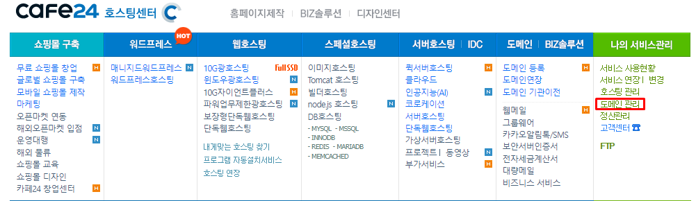 2. 그 다음에 [나의 서비스관리]에서 [도메인 관리]를 클릭합니다.