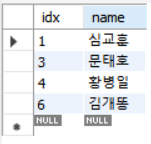 이때 name의 값이 NULL이 아닌 애들만 보고 싶다면, 다음과 같이 쿼리를 짜시면 됩니다.