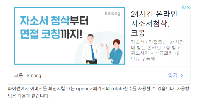 포스팅 본문 영역의 경우 광고들이 글에 여백 없이 붙어 있다면 가독성을 해칠 수 있습니다. 아래 캡쳐 화면은 여백 없이 글에 붙은 광고의 예시입니다.